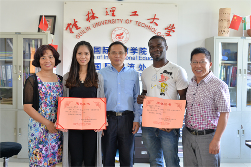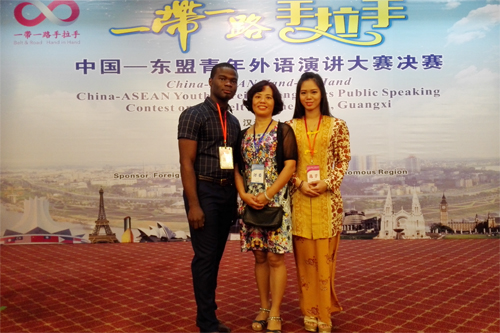 太阳集团tyc138马来西亚籍留学生林淑盈和喀麦隆籍留学生大卫代表桂林赛区赴南宁参加汉语组决赛,与来自广西大学、广西师范大学等高校选手以及在区内学习、工作、生活的国际友人同台竞技。林淑盈同学以优异的成绩获得一等奖,大卫同学荣获三等奖。